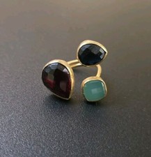Vintage Mid-Century Geometric Brass Glass Ring