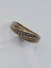 Mid Century Modern Brutalist Sterling Silver 5 CT Gypsy Set CZ Ring sz 7 12.9g