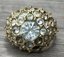 Vintage Signed SHUBE Gold Tone Crystal Encrusted Domed Ring Statement MCM SZ 7