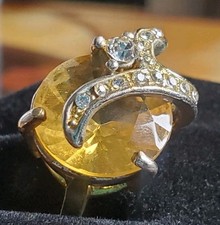 Vintage Whiting & Davis Topaz Size 7 Big Oval Statement Fashion Ring