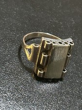 Antique Sterling 18K Carnelian Intaglio Brutalist Freeform Ring 5-