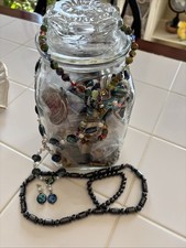 Jar Of Jewelry Mix (Necklaces, Bracelets, Earrings, Pins, Antiques Included)