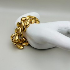 Vintage Chevron Link Bracelet Sculptural Mid Century Gold Tone 7 Inch Statement