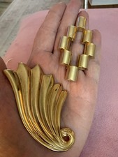 Vintage Mid Century Modern Large Gold Plated Brooch Pins Huge! Very Nice! 2pc!