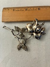 VTG Sterling Silver Rhinestone Rose Floral Spray Brooch – Large 3¼" Mid-Century