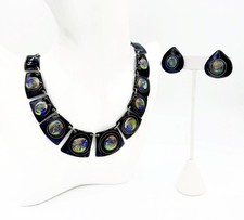 Gorgeous Vintage Mid-Century Austria Enamel Necklace & Clip Earrings