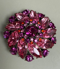 Mid Century Vintage Brilliant Shades of Pink Rhinestone Brooch 1 3/4" Round