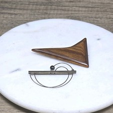 Mid Century Modern Atomic Brooch Lot Set 2 Artisan Crafted Wood Freeform Metal