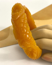 Mid Century Carved Lucite Bangle Bracelet Butterscotch Chunky Statement Piece