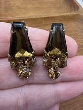 Vintage Mid-Century MCM Root Beer & Amber Prong-Set Rhinestone Clip-On Earrings