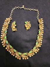 MID-CENTURY LISNER GREEN & GOLD 2-PIECE NECKLACE & EARRING SET