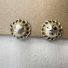 Vintage Dome Earrings Metallic Splatter Gold-Tone MCM Mid-Century Retro