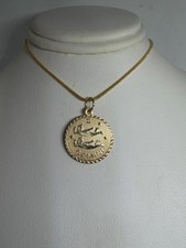 Vintage Mid Century Mod Gemini Zodiac Sign Goldtone Pendant Necklace 18”