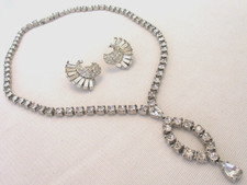 Vtg 60"Rhinestones - Necklace with Pendant & Gorgeous Clip Earrings