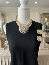 Vintage Mid Century Modern Large Two Tone Necklace & Clip Earrings 1960’s 19” L