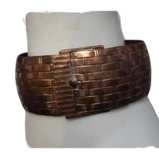 Vtg Mid Century Solid Copper Wide Basket Weave Buckle Cuff Bracelet