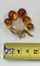 Mid Century Russian Amber Lucite Gold Tone Brooch