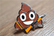 War or Anti-War Emoji Poo/Ice cream Emoji with an AK-47, Anti-War Pin
