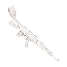 925 Sterling Silver Vintage Pendant Cluster CZ Military AK 47 Rifle Gun PT25641