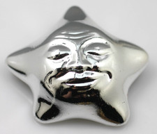 Vintage Silver tone AJC 3-D star sun with face shiny brooch pin no music box