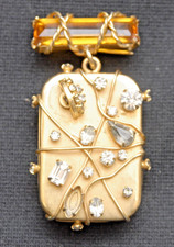 VINTAGE REUGE SWISS GOLD PLATED MUSIC BOX PENDANT WITH AMBER STONE AND CRYSTALS
