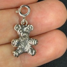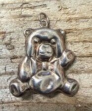Vintage Sterling Silver Teddy Bear Charm 3D Animal Jewelry