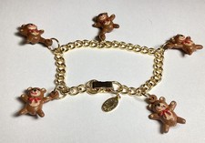 VTG APPLAUSE TEDDY BEAR CHARM BRACELET 6 1/2” GOLDTONE GIRLS ADORABLE