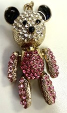 Vintage Style Articulated Rhinestone Bear Pendant Pink Jointed Figural Charm