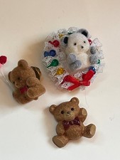 Vintage Lot of Brown or White Flocked 1984 Hallmark Marked Plastic Teddy Bear