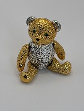 Vintage Articulated Teddy Bear Brooch Silver Gold Tone Pin Rhinestone Eyes 1.7"