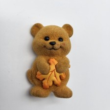 80's Teddy Bear Stick Lapel Pin Flocked Brown Fuzzy Brooch Jewelry Plush VTG