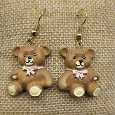 Adorable vintage teddy bear dangle earrings sweet whimsical