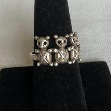 Vintage 925 Sterling Silver ring size 8 3 teddy bears Estate jewelry