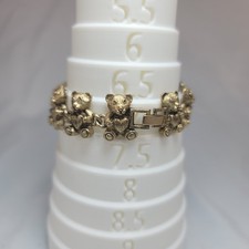 Vintage Unsigned GoldTone Teddy Bears Plush Stuffed Toys 7.5” Slide Bracelet