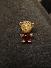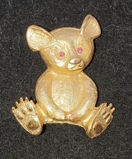 Vintage Teddy Bear Gold Tone Red Stoned Belly