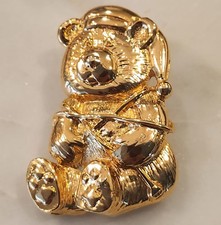 Vintage Gold Tone Teddy Bear Brooch Pin Figural Costume Jewelry Cute Gift