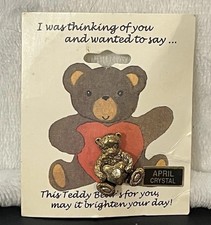 Vintage Teddy Bear Brooch Lapel Pin APRIL CRYSTAL Gem Gold-Tone on Original Card