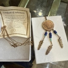 Goldtone Southwestern Indian Cent Coin Arrowhead Coral Bead Pendant