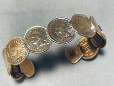 RARE NAVAJO ROYSTON TURQUOISE INDIAN HEAD PENNY BRACELET