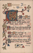 XMAS Christmas Joys Thine Illuminated Manuscript Greeting Card 1908 Poetry Belle