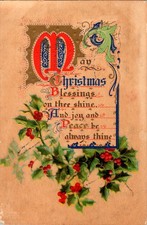 Antique Embossed Christmas Postcard Illuminated Manuscript Style Holly Berries