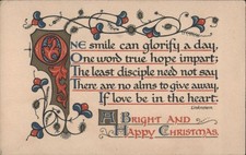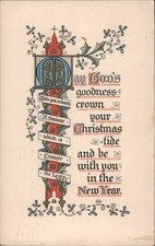 Antique Postcard Merry Christmas Bright New Year Illuminated Manuscript 1900s