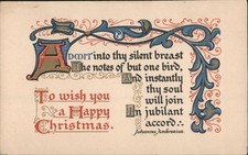 1928 Christmas Greeting illuminated manuscript style poem VTG Postcard CG2.