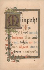 Religious Mizpah! Illuminated Manuscript Style with Floral Border Quote Vintage