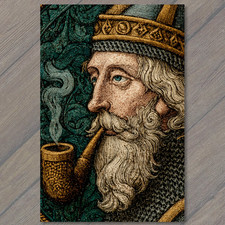 POSTCARD Medieval King Smoking Pipe Illuminated Manuscript Style Portrait