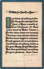 New Years Wish Poem Illuminated Manuscript Vintage Postcard