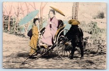 Japanese Women Geisha Rickshaw - Japan Hand Colored Postcard