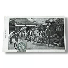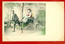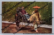 Antique Japan Jinrikisha Rickshaw Hand-Colored Postcard People Scene 1900s