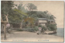 Honmoku, Yokohama Postcard 1910, Geisha & Rickshaw, Hand Colored, Japan Stamp