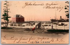 1907 Bund of Yokohama Japan Harbor Boats Rickshaw Rare ANTIQUE Postcard 9834